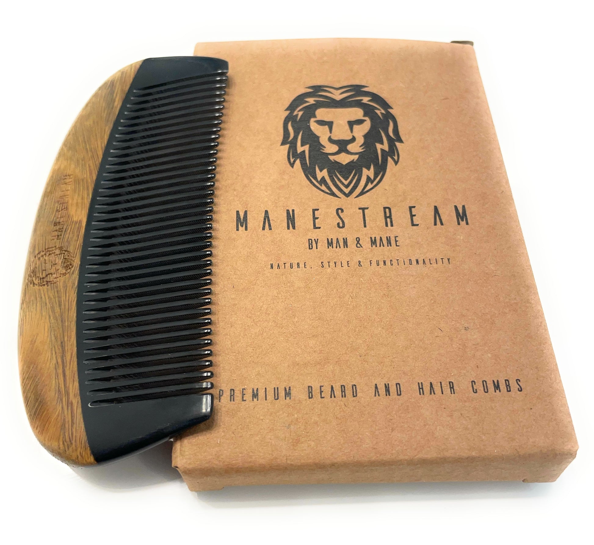 Premium Natural Ox horn and Sandalwood Beard Comb – the Perfect Beard & Mustache Grooming Companion & Gift for Men.
