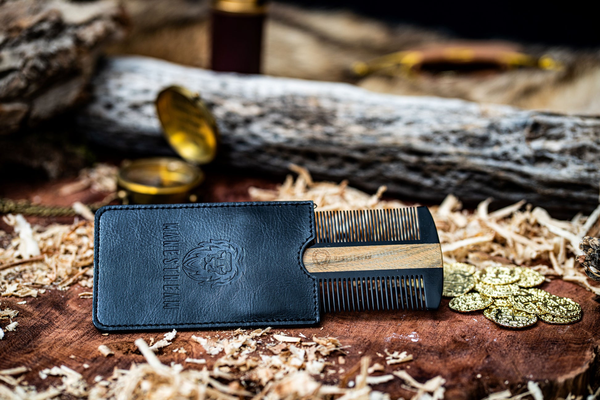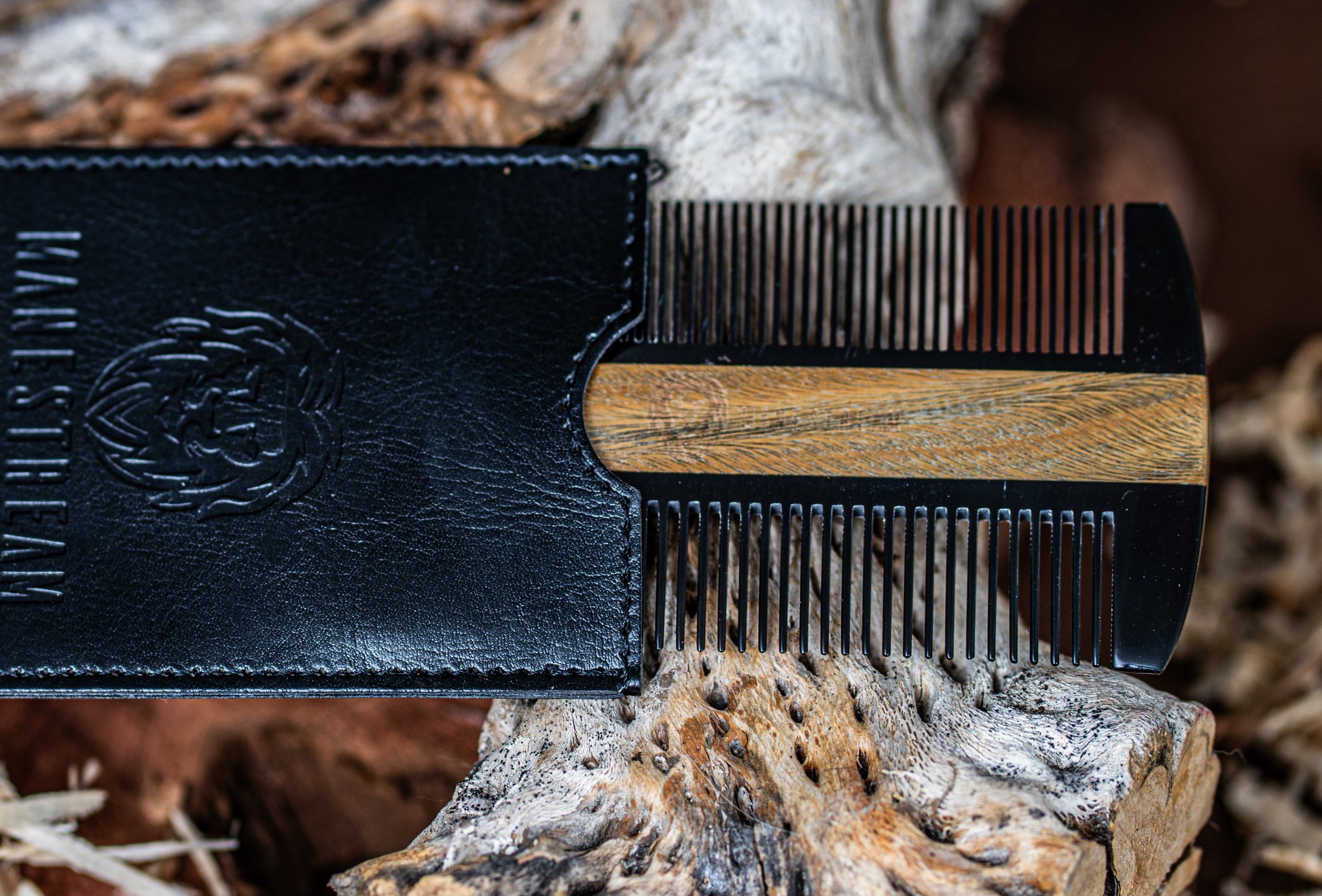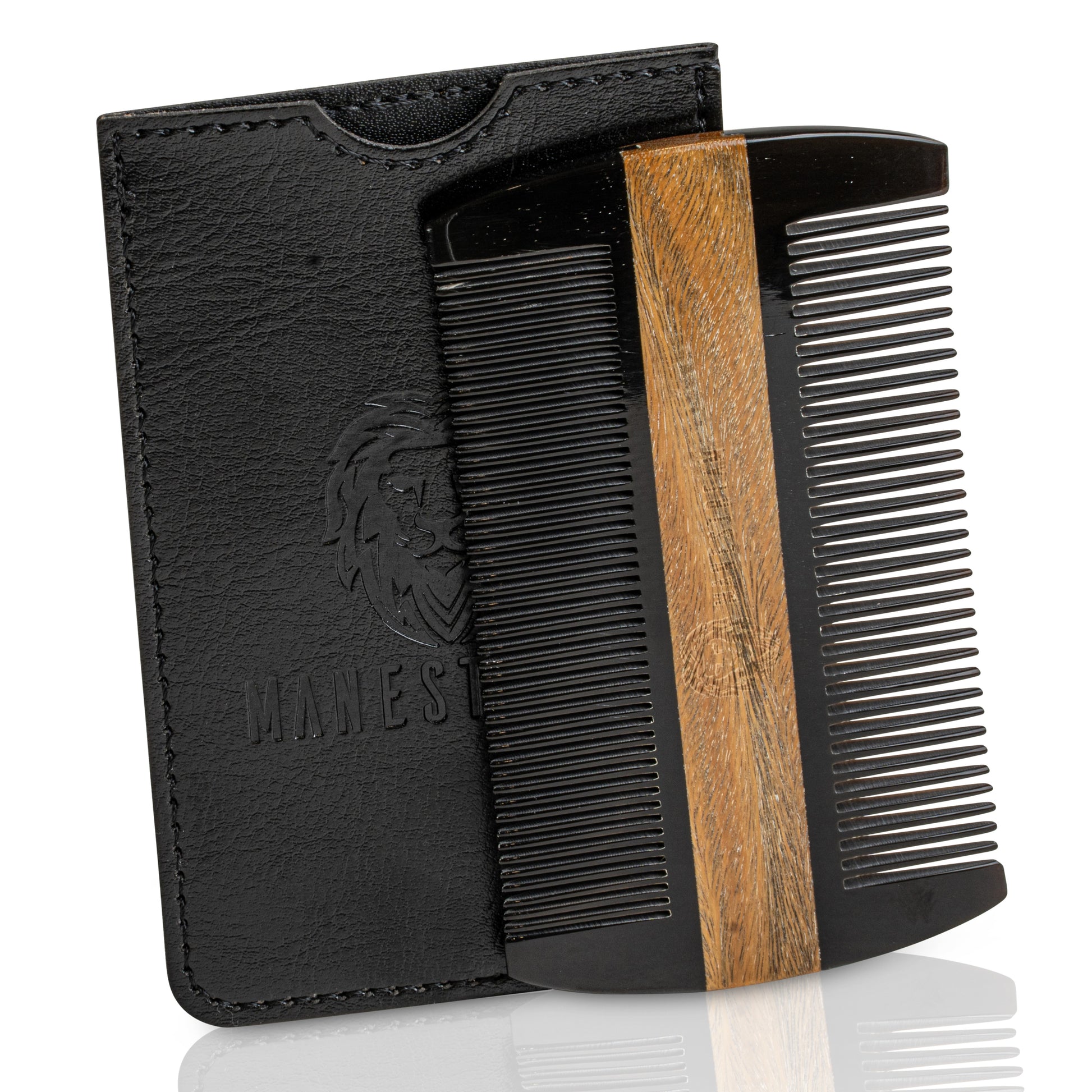 Ox-horn & Sandalwood Dual-Action Beard Comb with Black PU Pouch